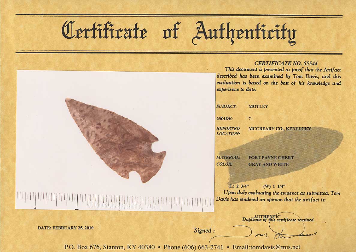 [ Paleo | Archaic | Woodland | Mississippian | HardStone | Pottery | Slate & Bone | Our Guarantee | How To Order | Home ]