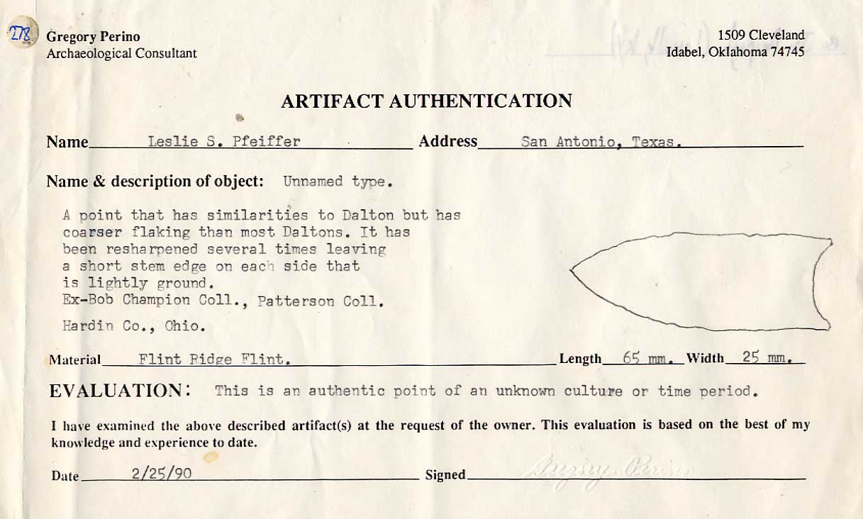 [ Paleo | Archaic | Woodland | Mississippian | HardStone | Pottery | Slate & Bone | Our Guarantee | How To Order | Home ]