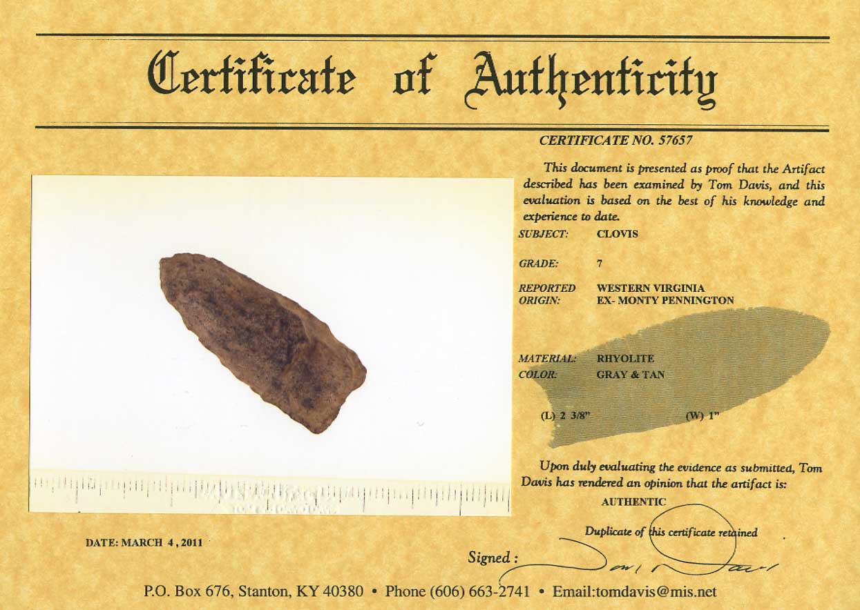 [ Paleo | Archaic | Woodland | Mississippian | HardStone | Pottery | Slate & Bone | Our Guarantee | How To Order | Home ]