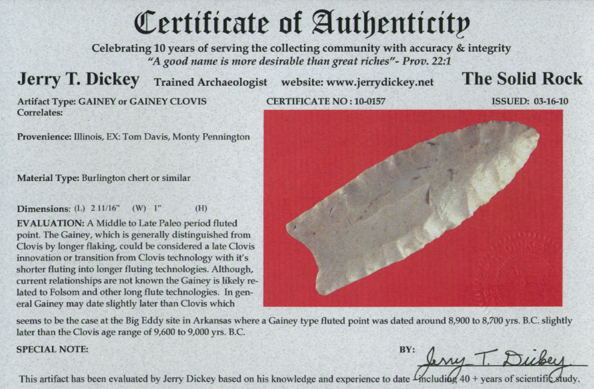 [ Paleo | Archaic | Woodland | Mississippian | HardStone | Pottery | Slate & Bone | Our Guarantee | How To Order | Home ]